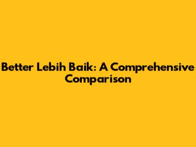 Better Or Lebih Baik: A Comprehensive Comparison