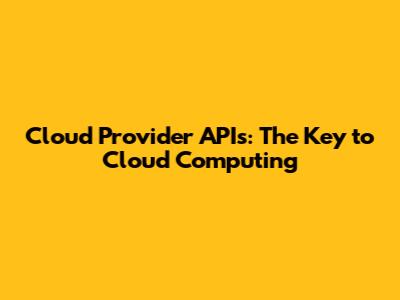 Cloud Provider APIs: The Key To Cloud Computing