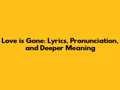 Love Is Gone: Lyrics, Pronunciation, And Deeper Meaning