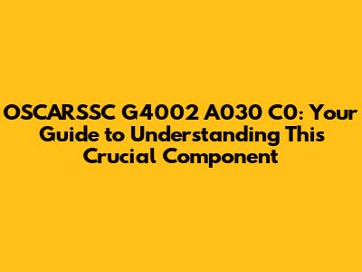 OSCARSSC G4002 A030 C0: What It Is & Why It Matters