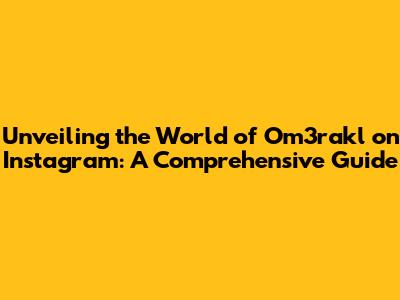 Unveiling The World Of Om3rakl On Instagram: A Comprehensive Guide